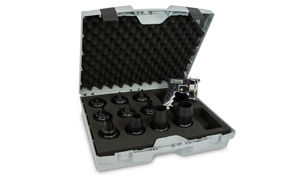 Koffer met schuimstofinterieur + PTC-pistool + 10 buismondstukken naar keuze