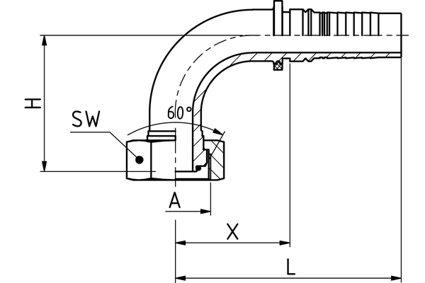 BSP-afdichtkop, 60°-conus met O-ring en wartel, BSP-schroefdraad