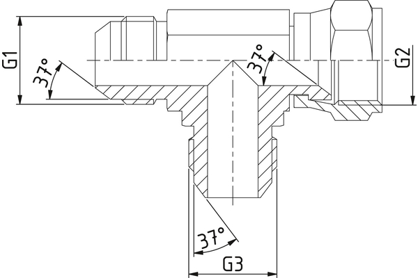 Rechte koppeling JIC-JIC-JIC (L,Ü/M)