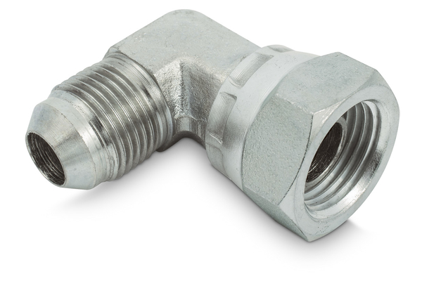 Gebogen schroefkoppeling 90° JIC buitendraad - BSP binnendraad