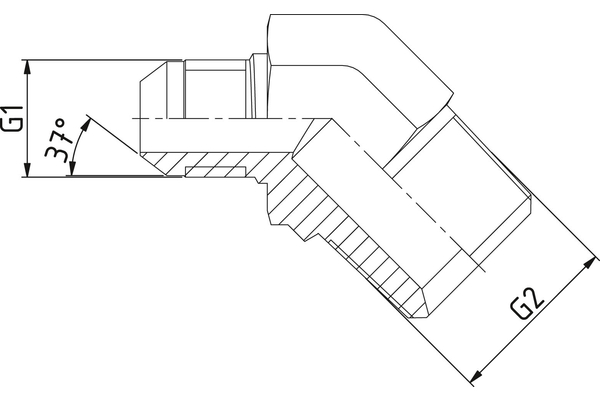 Gebogen schroefadapter 45° JIC buitendraad - BSPT buitendraad
