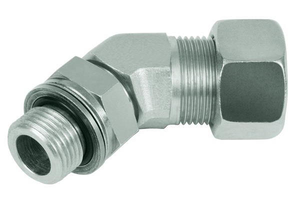 Instelbare 45°-inschroefkoppeling, metrische schroefdraad met O-ring en contramoer