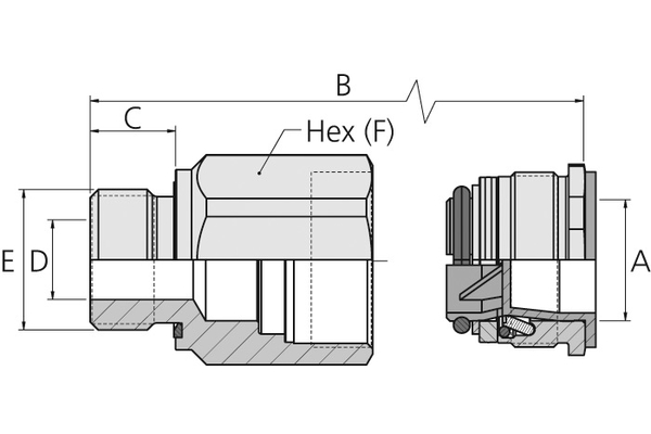 Koppeling - G buitenschroefdraad met ingebouwde afdichting. Serie 830 koppelingen zijn verkrijgbaar met G buitenschroefdraad (ISO 228/1) en met rubberen afdichting (volgens ISO 1179-2) in de maten 1/4" tot 1".