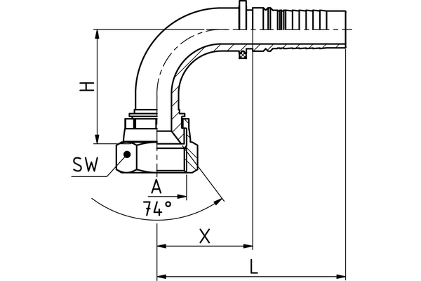 Tête d'étanchéité JIC, cône 74° avec écrou-raccord, filetage UN/UNF